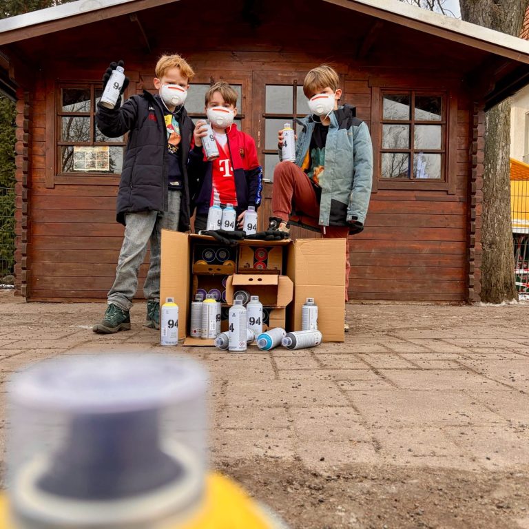 Dank der finanziellen Unterstützung des Fördervereins konnten zahlreiche Utensilien, allen voran natürlich Sprühdosen in diversen Farben, angeschafft werden. Mithilfe der neuen Ausstattung können die Kinder ab sofort ihre kreativen Ideen umsetzen können.